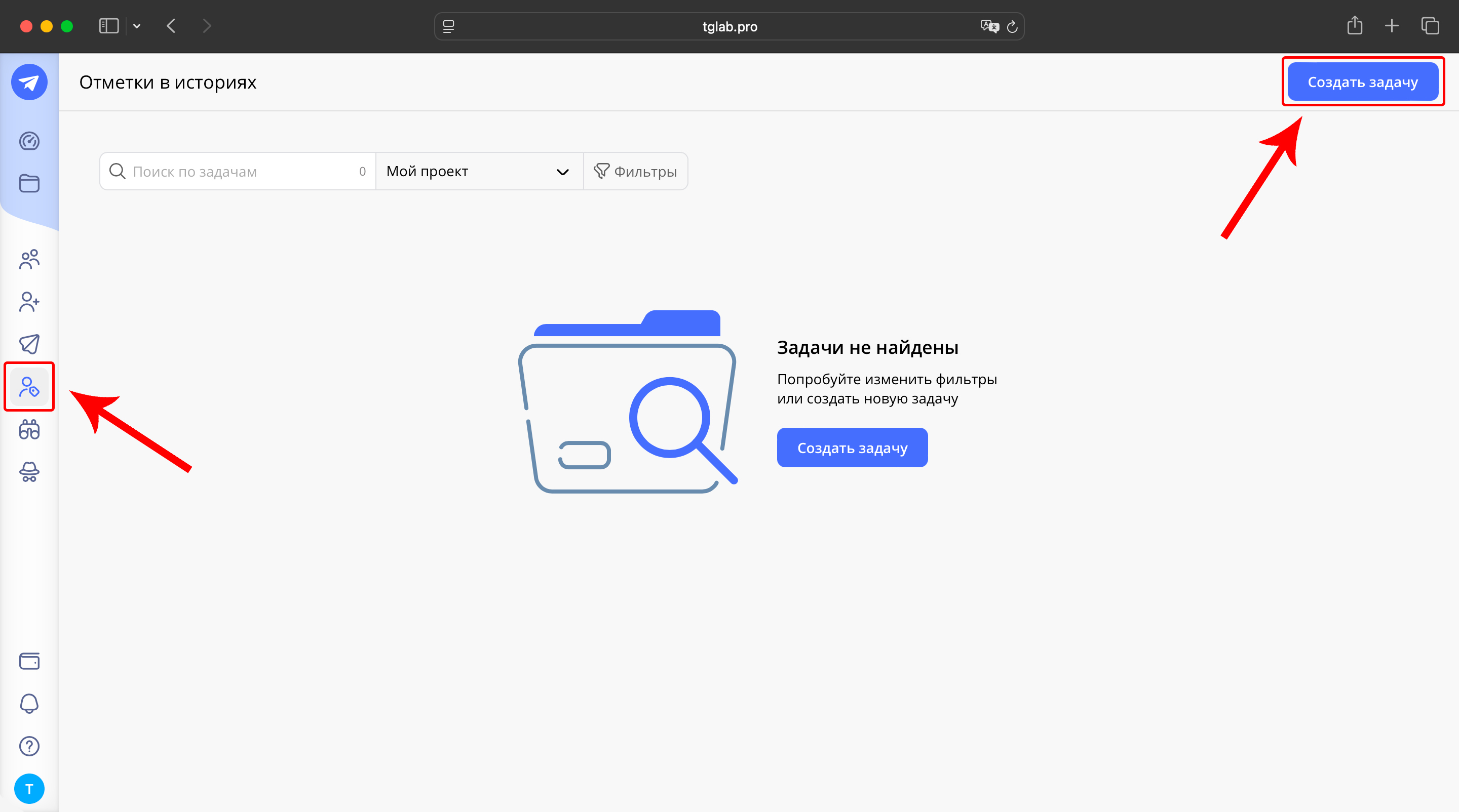 Нажимаем кнопку "Создать задачу" в верхнем правом углу