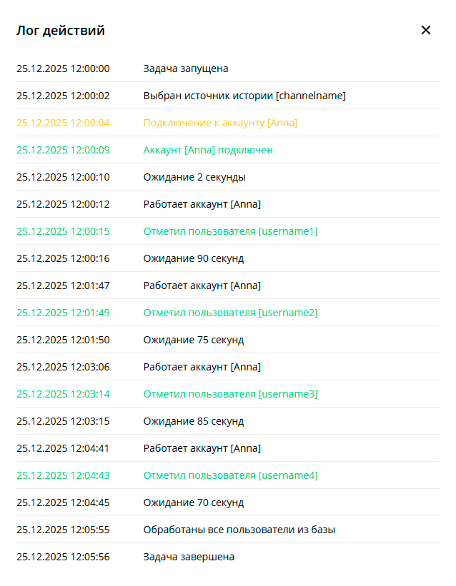 Лог в режиме реального времени отображает информацию о всех действиях и ошибках, позволяя вам отслеживать каждый шаг задачи и получать полную картину работы инструмента